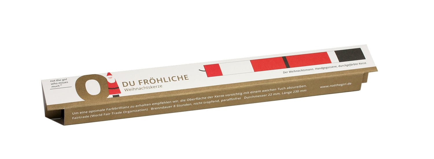 Halleluja! Weihnachten kütt! Das schönste Mitbringsel überhaupt, drinnen wie draussen hübsch und fairtrade. Wenns dann noch aus Hamburg kütt, was willste mehr. Mehrfarbige Kerze mit Botschaft. Als Geschenk, Glückwunsch oder als Gruß einzeln in farbiger Kartonage verpackt. Die Kerze ist aus durchgefärbtem Wachs, bei der Fertigung wird Farbschicht für Farbschicht von Hand gegossen.
